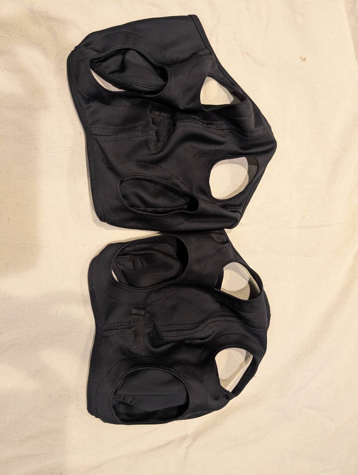 4 horse size fly bonnets. 1 Navy Back On Track 1 Black Back On Track 1 Hoof Tracks Black/White Cow Print - Crochet with fabric ears 1 Hoof Tracks Brown/White Cow Print - Crochet with fabric ears No holes, rips or stains. Great condition. Just don't use anymore.