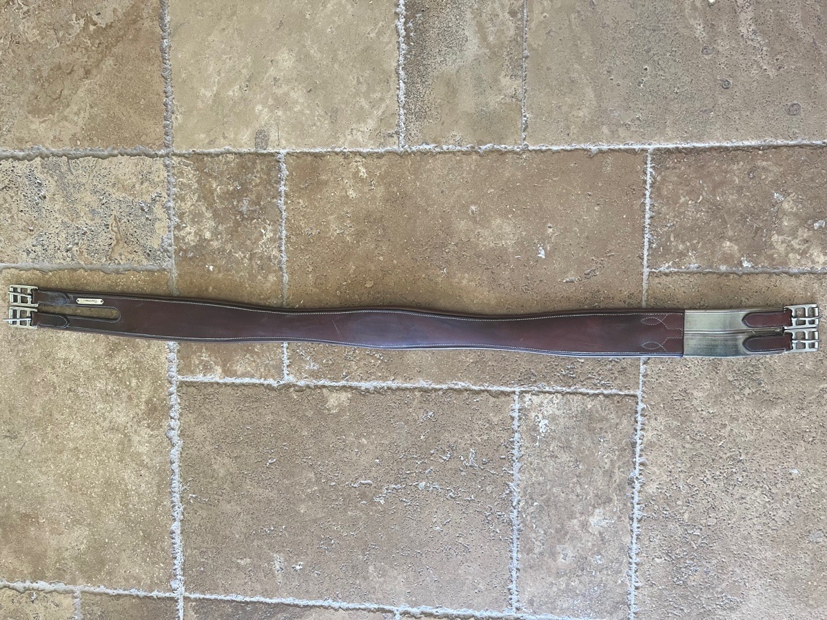 Unsure of the brand but this is a 52” size leather girth in excellent condition.