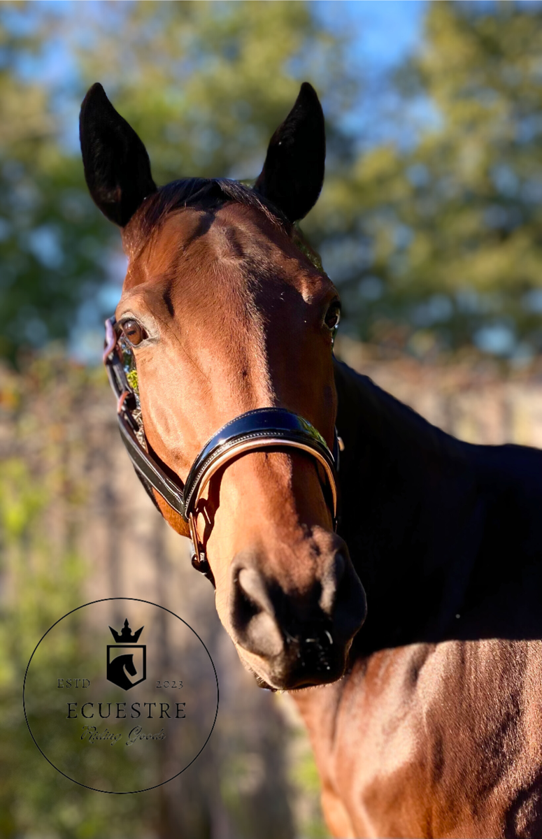 Leather halters with brass fittings. Fancy stitching on noseband, padded anatomical crownpiece, padded noseband with premium vegetable tanned leather. Pony, cob, and horse size available.