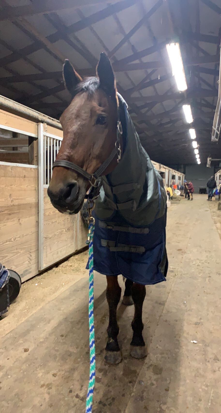 Light blue with navy. Size 78. Has some fading but nothing terrible.