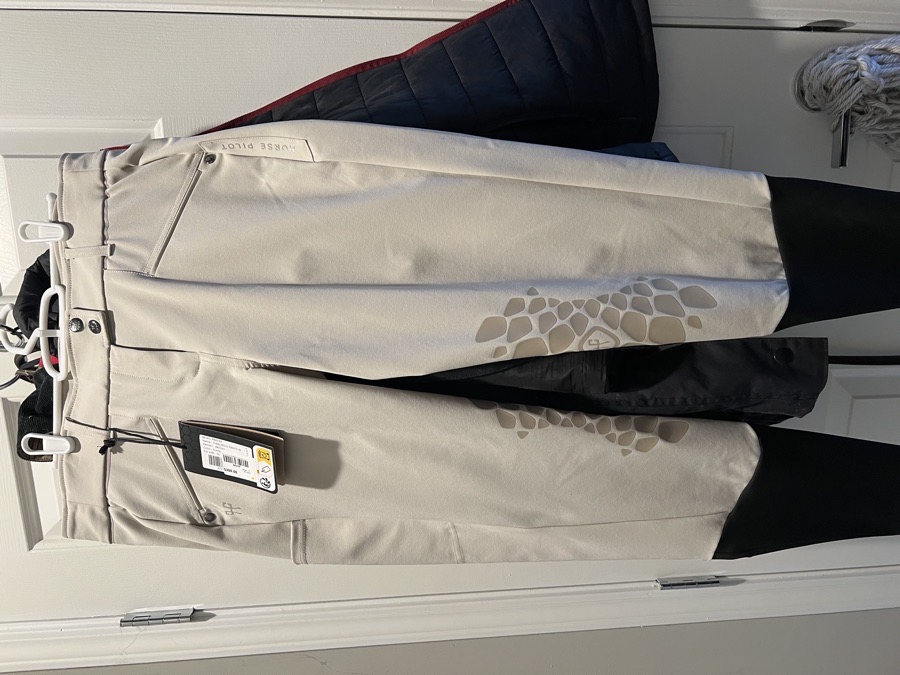 BNWT Track and Pace breeches by The Tack Hack Navy, Sz 34 THESE RUN SMALL. Per the Tack Hack website, they run approximately 1 size smaller, however, I think these fit more like a 30 in Tailored Sportsman. Great fabric with a great feel, back pocket detail, and silicone knee patch. Retail for $175 on thetackhack.com