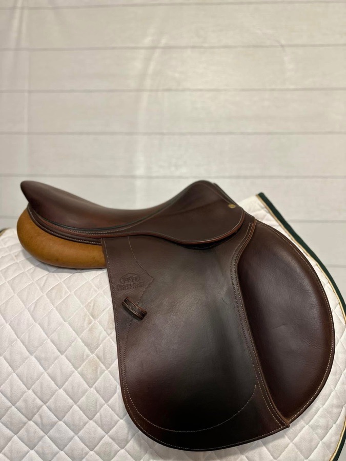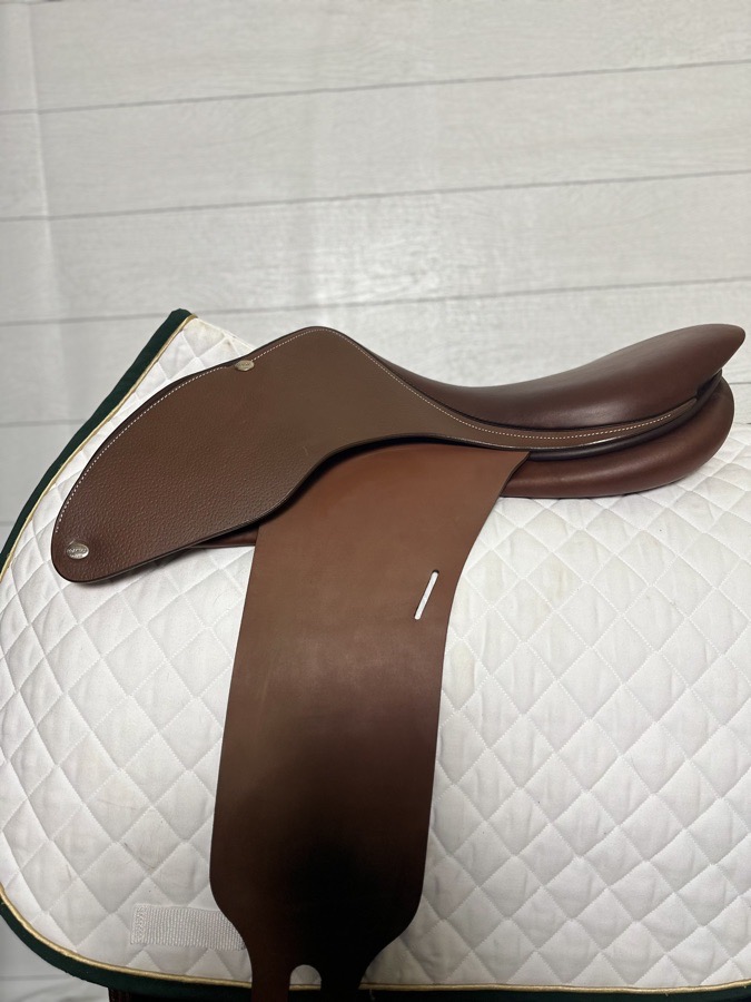 2024 17.5” 2L CWD SE01 This saddle is barely used! It’s lovely grain and calf leather for durability and comfort. This is the hard to find 17.5” seat with 2L (regular length straight) flaps. It is the popular flat seat. This saddle is on CWDs classic medium wide tree with standard RT panels, making it a great option for a rider with multiple mounts.