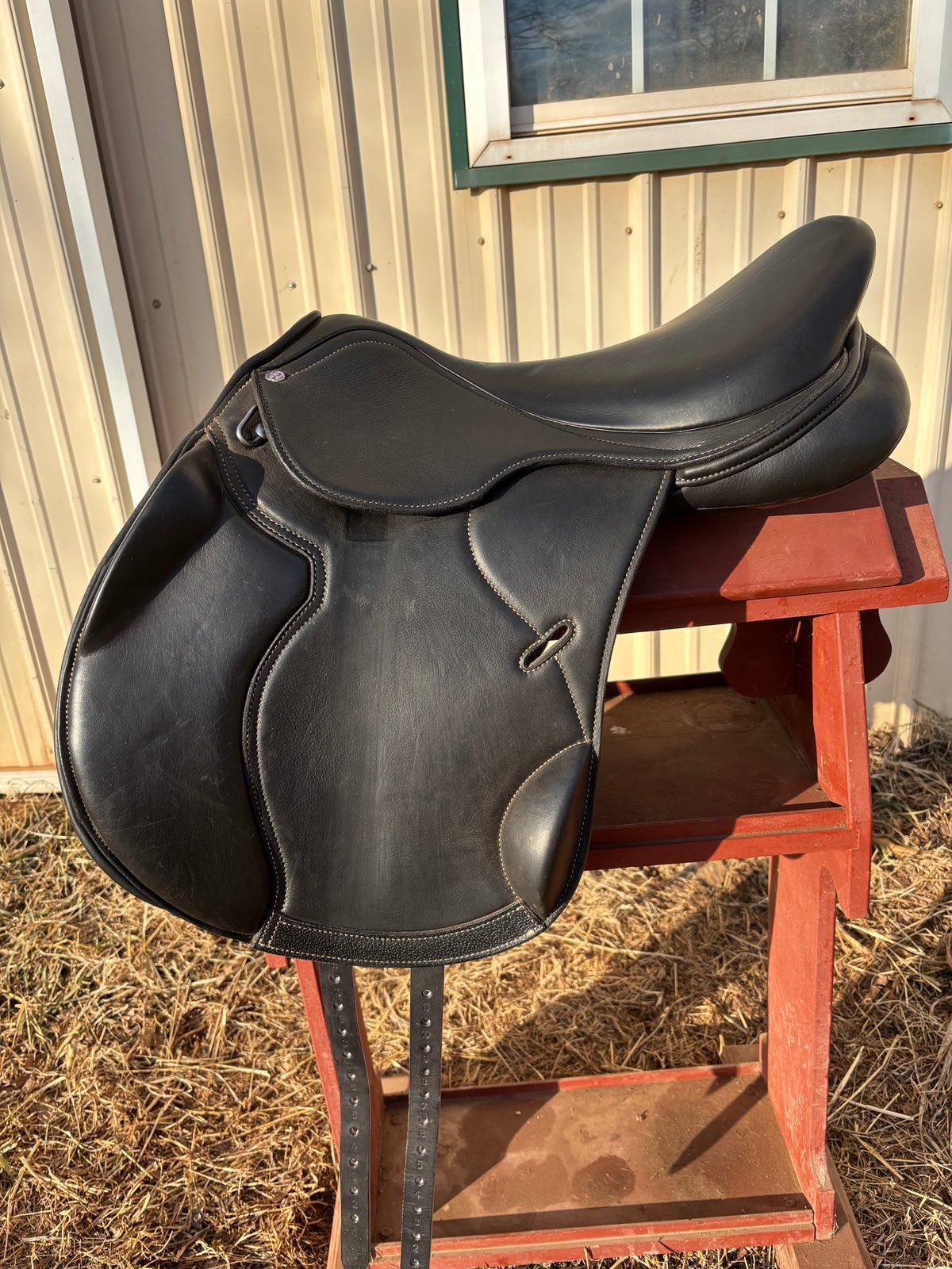17.5” Cavaletti black monoflap jump saddle - wool flocked, adjustable tree