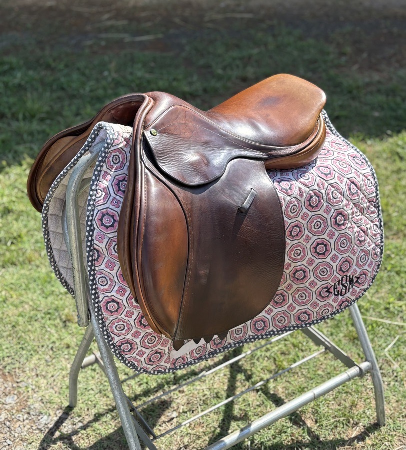 Pink/Black/White patern saddle pad full size, embroidered